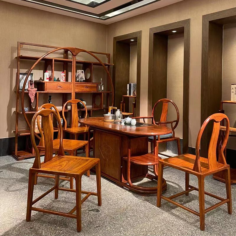 川天江産紫檀の主な種類は、ビルマ紫檀、黒檀、広葉黄紫檀、大紫檀、小葉紫檀です。中国風のローズウッドティーテーブルはハリネズミローズウッドで作られています。ハリネズミローズウッドの高品質な特性により、シルクのような繊細な質感と翡翠のような温かみのある色が独特で魅力的です。細部まで丁寧に彫刻されており、品質と創意工夫が表れています。川天江レッドウッド工場で丁寧に生産されており、品質は信頼できます。芝山のティーテーブルは人生の詩を伝える優雅な場所です。