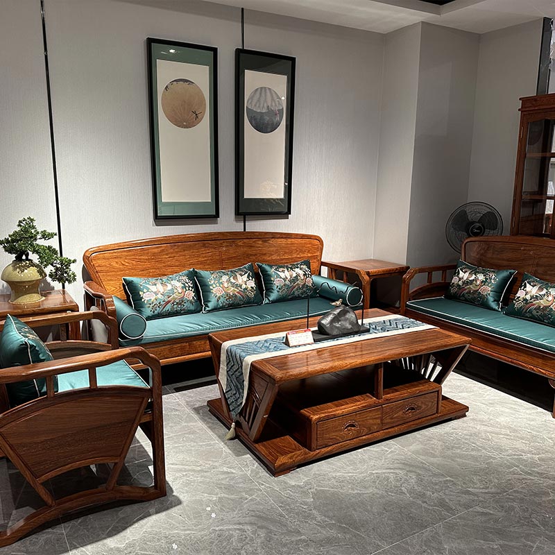 専門メーカーとして、私たちは川天江中国式無垢材ソファを提供したいと考えています。同社は現在、30,000平方メートルの工場面積を持ち、500人以上の技術および管理担当者と従業員がいます。ローズウッド家具の国産トップブランドの一つです。